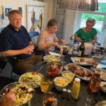 Vi drak kaffen på terrassen – men trak indenfor da vi skulle indtage grillmaden p.g.a den voldsomme blæst.
